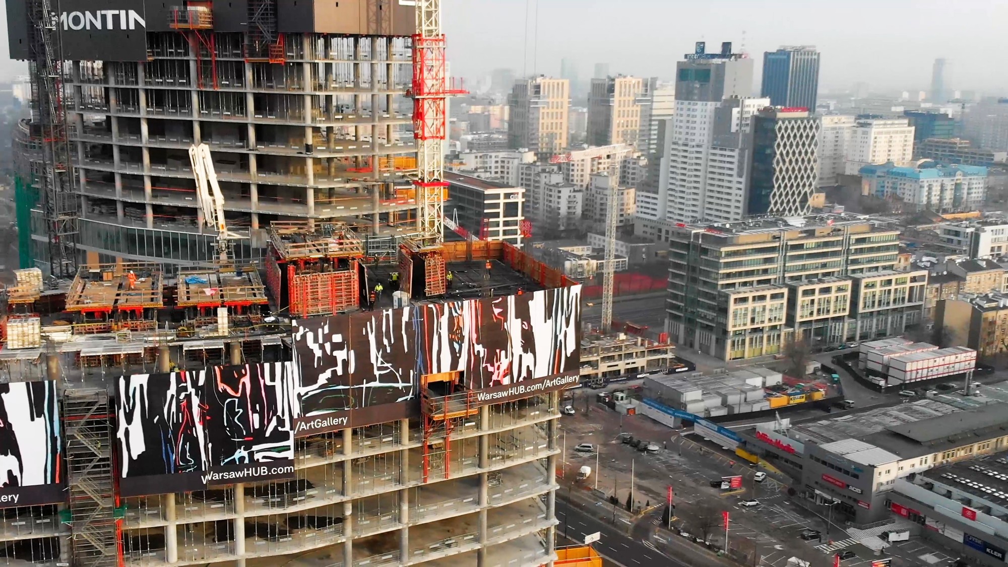 Na konstrukcji budowanego w centrum Warszawy kompleksu wieżowców The Warsaw HUB zawisła niezwykła instalacja – wielkoformatowy obraz autorstwa polskiego malarza abstrakcjonisty Łukasza Stokowskiego. To pierwsza tego typu ekspozycja sztuki w Europie.